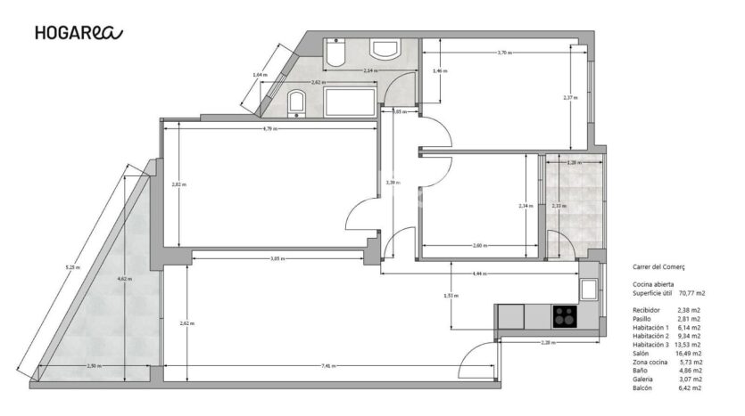 ¿Te gustaría vivir en un piso alto, en una ubicación privilegiada de Barcelona, de 3 habitaciones, balcón y con ascensor? Con Hogarea es posible! Te presentamos un hogar lleno de oportunidades en la Calle Comerç, en una 7ª planta real de 90 m², con ascensor y unas vistas que te enamorarán. La altura de este piso y su orientación te regalan unas vistas únicas de la ciudad y una excelente entrada de luz natural, creando una atmósfera cálida y agradable. Además, la distribución y sus características hacen de este inmueble una oportunidad ideal para personalizarlo y adaptarlo a tus gustos y necesidades. Adelante, disfruta en su salón comedor, amplio y luminoso, ideal para disfrutar de reuniones familiares o momentos de relax. Desde el, podrás acceder a un acogedor balcón con vistas despejadas a la ciudad. La cocina independiente, dispone de espacio para optimizar según tus necesidades, y un amplio lavadero para instalar tu zona de colada. La zona de noche está formada por tres habitaciones, 2 dobles y una mediana, ideales para dormitorios principales o espacios de trabajo. El baño dispone de 4 piezas, con plato de ducha y una ventana para su buena ventilación. El piso cuenta con detalles que garantizan comodidad y eficiencia: suelo de gres, puertas de madera y ventanas de aluminio con doble cristal en el baño y una de las habitaciones, que aseguran un buen aislamiento. Además, dispone de calefacción, aire acondicionado y conexión de gas natural. Situado en el corazón del barrio, este piso goza de la tranquilidad y el encanto de la zona, con todo lo que necesitas al alcance de la mano. A tan solo 7 minutos caminando del metro Arc de Triomf (L1), y 9 minutos de la estación de Jaume I (L4) una conexión directa al centro de la ciudad. Líneas de tren y autobús también se encuentran cercanas, ofreciendo múltiples opciones de transporte público para moverte con facilidad. Rodeado de comercios, servicios, colegios, restaurantes y zonas verdes, como el Parc de la Ciutadella, ideal para desconectar y disfrutar del aire libre. Otros lugares de interés de la zona son el mercado de Santa Caterina, la basílica de Santa María del Mar y el Palau de la Música, y la playa de la BarcelonetaNo pierdas la oportunidad de HOGARear en este inmueble por: